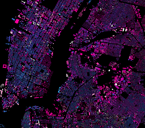 O terceiro mapa é de Brandon Liu e usa dados públicos para mapear os edifícios de Nova Iorque de acordo com a sua idade. Vale a pena explorar esta versão interativa.