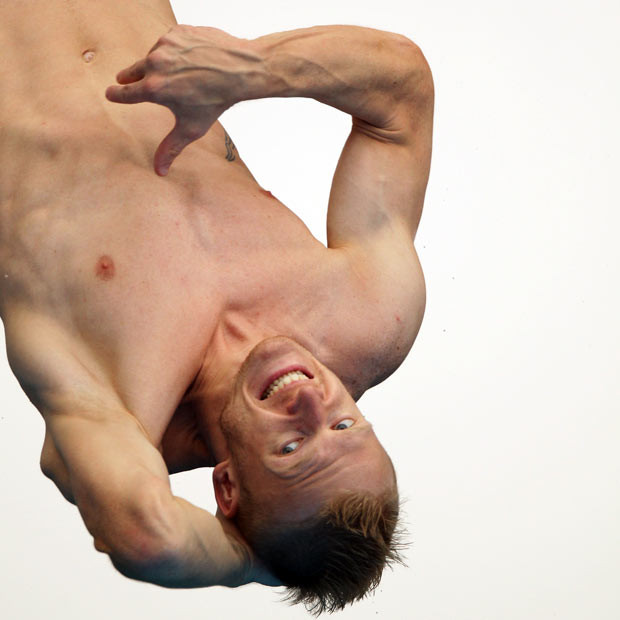 Esta é provavelmente a minha favorita das fotografias de mergulhadores nos Campeonatos do Mundo em Xangai. A série foi publicada no Telegraph e se na maior parte documenta a agonia do esforço de alta competição, aqui parece haver quase um prazer, quase um descanso. O mergulhador em questão é Sergej Baziuk da Lituânia e a fotografia é de Ezra Shaw, trabalhando para a Getty Images.