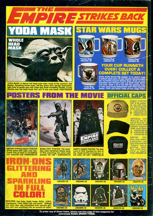 Aqui ao lado, um poster da época, publicitando merchandising para 'The Empire Strikes Back'.